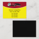 Simples modelo de cartão de negócios de reboque automotivo criado em vermelho e amarelo em negrito e preto com gráfico de reboque flatbed com carro em reboque. Concebidos para rebocar ou rebocar condutores de reboque.