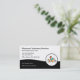 Cartões de visitas Veterinários modelo de design simples moderno com emblema Veterinário, você pode deixar no lugar ou substituí-lo por seu próprio logotipo e layout de cartão de visita clássico que você pode personalizar on-line. Projetado para uma clínica veterinária, hospital de animais de estimação ou médico de animais.
