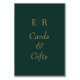 Guie seus hóspedes com elegância usando nosso Sinal de Mesa de Cartões e Ofertas Verde Esmeralda. Contra um fundo verde esmeraldo calmo, monogramas elegantes em branco adoram este sinal, dirigindo hóspedes sem problemas para a área de cartões e presentes designados. Este sinal adiciona um toque de sofisticação ao seu decor de eventos.