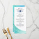 Estes cartões são perfeitos para qualquer casal planejando um casamento romântico perto do mar. O design apresenta uma onda de aquarelas pintada manualmente em tons de turquesa, azul e verde sobre fundo branco limpo e as cores do texto contrastam em azul marinho e cinza. O design simples pode ser personalizado para se adequar ao seu evento especial e será o cartão de menu perfeito para qualquer festa temática na praia, incluindo chás de panela, noivados, chás de casamento, festas de aniversário e muito, muito mais.