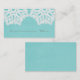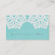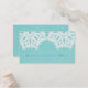 Cartões simples e sofisticados de local de casamento de rendas Elegantes, com um toque branco, sobre um fundo vintage faux turquesa leve. Estes cartões clássicos e na moda são perfeitos para um casamento rústico. O espaço é dado nesses cartões de escolta e na moda para escrever nos nomes e nos números de mesas onde cada um de seus convidados estará sentado na sua recepção. Clique no botão "Personalizar a TI" para encontrar opções adicionais de personalização.