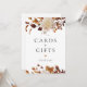Este cartão e sinal de presentes contém cores aquáticas boêmicas que caem em florais e uma letra simples serif. Edite todos os textos para atender às necessidades do seu evento. As cores da fonte são 100% editáveis. Este sinal editável pode ser usado para qualquer evento e é perfeito para o seu evento de outono de som terrestre.