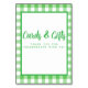 Adicione um toque de elegância à sua mesa de presentes com nossos Cartões Gingham Verdes e Sinal de Mesa de presentes. Apresentando um padrão de na moda gingham e as palavras "Cartões e Presentes" juntamente com "Obrigado por Celebrar conosco", este sinal de mesa é uma forma encantadora de guiar os seus convidados. Perfeito para um chá de fraldas, uma comemoração neutra em termos de gênero, ou até mesmo uma Rua. chá de fraldas temático de Patrick, este sinal combina lindamente com itens da nossa Coleção de Charme Um Pouco Sortuda para criar um decoro coeso e na moda.