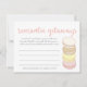 Deixem os chás de panela compartilharem suas férias favoritas guardarem ideias para o casal feliz com essas cartas doces. Coloque uma pilha na entrada do chá, passe-as ou deixe uma em cada lugar. Faz uma bela manutenção para a noiva, e um alternativo excelente para noivas que querem algo um pouco diferente dos jogos habituais! A design apresenta uma pilha de macarões franceses saborosos em tons pastéis de rosa, amarelo, bronzeado e marfim, com uma mistura de tipos tradicionais e artesanais.