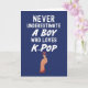 Título: Cartões Kpop Azul Marinho Fofo para Meninos e Crianças - Nunca Subestime um Menino que Ama K-Pop