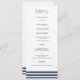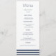 O design moderno e elegante imprimiu os cartões listrados azuis marinhos do menu do comensal de casamento que podem ser personalizados com seu texto. Verifique para fora a loja do design da arte gráfica para ver se há outros produtos que combinam este design!