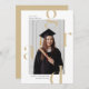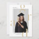 Um cartão de anúncio de graduação moderno apresenta design de tipografia mínima.