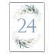Cartões de números da mesa de casamento de cor azul-poeirenta