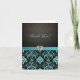Cartões "Obrigado" elegantes em azul aqua / preto damasco. Com detalhes em diamantes. Belos cartões de casamento damasco.