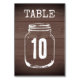 Cartões de números de mesas de casamento ruidosas de madeira castanha. Cartões personalizados para assentos de convidado e muito mais. Belo decoro de mesa para recepção de casamento chique country. Ajude a encontrar sua mesa e assentos rapidamente. Bonito modelo com contorno de jarro de mason angustiado. Decoração e decorações da mesa de tendências.