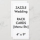 Cartões de rack personalizados e de menu, impressos no estoque de cartão branco brilhante (100 lb.) com acabamento de brilho, alta qualidade, cor de cheio, impressão com branqueamento de cheio. Opções de 4" x 9" (retrato) ou 9" x 4" (paisagem). Mínimo 25 pedidos de cartão. Até 50% de desconto para pedidos em massa. Convites personalizados de casamento personalizados e essenciais do Zazzle.