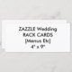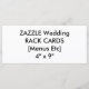 Cartões de rack personalizados e de menu, impressos no estoque de cartão branco brilhante (100 lb.) com acabamento de brilho, alta qualidade, cor de cheio, impressão com branqueamento de cheio. Opções de 4" x 9" (retrato) ou 9" x 4" (paisagem). Mínimo 25 pedidos de cartão. Até 50% de desconto para pedidos em massa. Convites personalizados de casamento personalizados e essenciais do Zazzle.