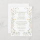 Mergulhe na elegância contemporânea com esta carta de detalhes projetada para um casamento romântico boêmico. Adorado com motins de flor silvestre entrelaçados em uma elegante coroa floral. Este cartão personalizável permite personalizar sua experiência de casamento, adicionando um toque moderno com um monograma opcional nas costas, melhorando a sofisticação geral de seu verão rústico ou celebração de outono.