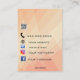 Esta bela placa portadora de joias possui um design geométrico de fundo de pêssego laranja e marcas ajustáveis para orifícios de brinco e linhas de suporte de colar. Acima está o nome de uma mensagem. No verso, há sinais editáveis para um código QR, número de telefone, e-mail, facebook, site e Instagram. Você pode excluir os ícones que não precisar. O texto de ambos os lados é editável, então vá em frente e altere as informações, assim como o estilo, o tamanho e a cor da fonte, e torne-as suas! Crédito da fotografia: Pawel Czerwinski, 2020. Aproveite seus novos Cartões de Detentor de Joias Laranja Editáveis!