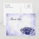 Cartões de agradecimento com letras cursivas e espaço para o seu endereço de resposta personalizado e arte antiga de um cesto de flores em azul sobre um fundo de falso canvas. Clique em Personalizar para alterar as fontes e mais!