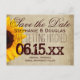 Cartões-postais de "Save the Date" com tema de girassóis para casamentos country western. O fundo é um tecido marrom rústico, semelhante a um design de aniagem. Basta adicionar os nomes dos noivos e a data do casamento, junto com o local e qualquer outra informação que deseje incluir neste modelo fácil de usar. Em seguida, adicione o endereço de devolução no verso. Economize dinheiro em selos enviando esses cartões como cartões-postais.