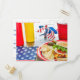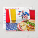 Uma fotografia de um cheeseburger completamente carregado num biscoito patriótico com tema fornece o tema perfeito para o seu próximo biscoito ou convite para CHURRASCOS. Use estes cartões postais exclusivos para convidar seus amigos para o Dia do Memorial, 4 de julho, Dia da Independência ou Festa de Churrasco do Dia do Trabalho.