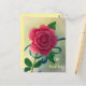 Estes cartões postais de convite para o casamento apresentam uma bela pintura aquosa, de CherylsArt, de uma rosa rosa rosa rosa no cheio, com folhas verdes, decorada com uma fita azul. O texto, Nosso Casamento, é impresso em amarelo na frente, sobre uma pálida lavagem de verde. Há também tons de amarelo pálido no fundo. No verso do cartão postal, os detalhes do convite são escritos em rosa. Ambas são fáceis de personalizar nas formas modelo.