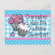 Cartões postais de cupcake adoráveis farão o presente perfeito para seu padeiro, cozinheiro ou qualquer pessoa que ame cupcakes. Bolinhas azul e branca e fundo gingham com um cupcake cor-de-rosa fosco brilhante e um cupcake branco divertido com uma cereja no topo. O texto diz que CUPCAKES FAZEM DA VIDA UM POUCO MAIS DOENTE! Faça um conjunto de presentes com nossos cartões de receitas coordenados ou ímãs de cozinha. PinkInkArt original!