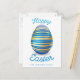 Cartões postais de Felz pascoa personalizados com ovo azul de Páscoa e texto personalizável onde você pode adicionar seu nome de família em fundo branco
