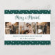 Cartões postais de Natal com anúncio de fotos verdes personalizadas, com um fundo verde estrelado, com 3 fotos no centro e um belo título de roteiro com letra de mão acima. Personalize facilmente este cartão postal verde de feriado com as suas imagens, mensagens e o seu nome de família. Você também pode personalizar a fonte e alterar a cor do texto e do plano de fundo.