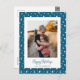 Cartões postais de férias com fotos azuis personalizadas, com estrelas e um belo título de roteiro festivo. Personalize facilmente estes cartões postais azuis de feriado com a sua imagem e um nome de família. O título Personalizado Feliz Natal disponível para dentro da ferramenta design - torne-o visível personalizando ainda mais este modelo. O fundo, o título e o texto podem ser personalizados em qualquer cor.