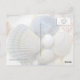 Cartões postais de fotografia de conchas azuis. A fotografia de conchas tropicais inclui quatro conchas de berbigão azuis e bege dispostas em círculo com uma concha de caracol lunar branco ou olho de tubarão no centro. Essas conchas vieram da costa do Golfo da Flórida.