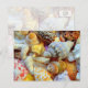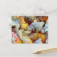 Cartões postais de fotografia de conchas. Muitas conchas bonitas e coloridas cobrem a frente deste cartão em branco. Uma concha oliva manchada de marrom, concha verme, naticas e vieiras estão incluídas.