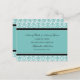 Cartões postais de lançamento em elegante cor damasco floral azul-turquesa, preto-e-branco, personalizável com seus nomes e detalhes de casamento, a maneira perfeita de anunciar sua eleição para amigos e familiares. Disponível em uma grande variedade de produtos de casamento correspondentes.
