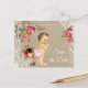 Cartões-postais de "save the date" para chá de bebê em juta com linda menina bebê e fio de pérolas sobre um lindo fundo floral e de juta e renda. Estes adoráveis cartões-postais de "save the date" para chá de bebê são facilmente personalizados para o seu evento, bastando adicionar seus detalhes no estilo de letra e texto de sua preferência.