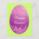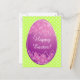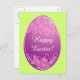 Cartões postais de ovos de Páscoa com padrão de bolinhas brancas. combinação de cores alegre, roxo e verde. Mensagem personalizada, Felz pascoa. Design para crianças convite de festas de caça a ovos.