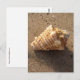 Uma concha de concha repousa na praia arenosa com luz lateral suave do pôr do sol. Imagem é uma fotografia colorida tirada em Playa Grande, Costa Rica na Costa do Pacífico. Personalize este cartão postal com o seu próprio texto e imagens, utilizando o botão "Personalizar".