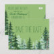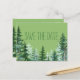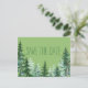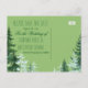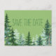 Cartões postais de salva data de casamento com abetos rústicos em um fundo verde. Você pode adicionar o texto de sua escolha no estilo de fonte que preferir. Você também pode alterar a cor da fonte e do fundo.