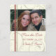 Cartões postais personalizados de anúncio de salvar a data de casamento com foto em um padrão elegante de redemoinhos em vermelho tijolo e creme branco, estilosos e totalmente personalizáveis com os detalhes do seu casamento e sua própria foto. Também disponíveis em muitos outros produtos para a festa de casamento.