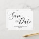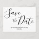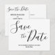Cartões postais de salvar a data de casamento simples com texto preto de roteiro mutável (você pode alterar o texto) impresso em fundo branco