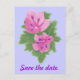Linda arte de gerânios rosa e roxo, com folhas, e Salve a data, é impressa em cartões postais personalizados. O texto pode ser facilmente personalizado nos formulários de modelo. Certifique-se de personalizar ambos os lados. Há itens correspondentes nesta loja. Obrigado por comprar CherylsArt na Zazzle.
