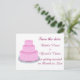Pintura de um bolo rosa de três andares decorado com corações rosa e acabamento rosa escuro, colocado em uma bandeja de prata, parece convidativo nestes cartões postais personalizados de Save the Date. O texto é fácil de personalizar e combina com o bolo. Certifique-se de personalizar o texto em ambos os lados.