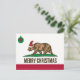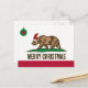Uma peça sobre a bandeira do Estado da Califórnia com urso vestindo um boné de papais noeis, ornamento de feriado para a estrela e a mensagem "Feliz Natal" cartões de Natal. Para adicionar seu texto ao lado inverso do cartão postal, use o recurso personalizar. Ou deixar vazio para uma saudação mais pessoal, escrita à mão. Você também pode gostar: