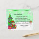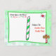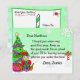 Flocos de neve fofos com fundo verde, com uma adorável carta personalizada de Natal do elfo festivo masculino do Papai Noel na frente. No verso, há um espaço para a criança escrever sua lista de desejos de Natal.