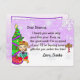 Flocos de neve fofos com fundo roxo, com uma adorável carta festiva personalizada da elfa das festas de fim de ano do Papai Noel na frente. No verso, há um espaço para a criança escrever sua lista de desejos de Natal.