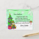 Flocos de neve fofos com fundo verde, com uma adorável carta personalizada de Natal do Papai Noel na frente, com um elfo festivo. No verso, há um espaço para a criança escrever sua lista de desejos de Natal.