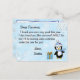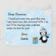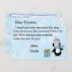 Flocos de neve brancos e azuis fofos, com um pinguim festivo adorável e uma carta personalizada do Papai Noel na frente. O verso tem um espaço para a criança escrever sua lista de desejos de Natal.