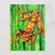 Um sapo de árvore ouro é retratado contra um fundo verde brilhante nesta pintura de aquarela.