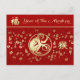 Elegante Folha de Ouro Vermelho Festivo design Ano Chinês dos Cartões-postais do Macaco. Os caracteres chineses na frente do cartão são um símbolo de macaco no bote chinês e um símbolo chinês de "boa sorte". Cartões correspondentes, tradicional comida chinesa vermelha de Hong Bao envelopes e presentes disponíveis na categoria chinês Ano Novo / Ano do Macaco de nossa loja.
