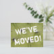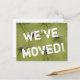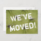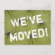 Cartões postais movendo-se. Texto de movimentação personalizado; nós movemos! Adicione seu novo endereço no verso. Cartões engraçados modernos para a nova casa ou localização de negócios.