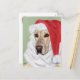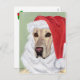 Belo Cartão de Natal Amarelo Labrador Retriever. Pintura Whimsical e fofa do Labrador Retriever pintada por Naomi Ochiai. Você gosta de Papais noeis de laboratório amarelo? Fundo verde de menta clara. Você pode personalizar o texto para Cartões de Natal personalizados!
