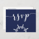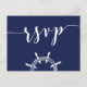 Cartões postais RSVP de casamento azul-marinho náutico personalizados com texto personalizável