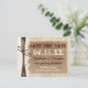 Cartões-postais de "Save the Date" com impressão de juta e renda para enviar aos seus convidados com antecedência em relação ao casamento. Escreve "Noiva e Noivo estão se casando". Ambos os lados do cartão-postal têm um fundo de impressão de juta desgastada com renda impressa e laço de corda impresso e um rótulo marrom e branco rústico e design de faixa. Basta adicionar os detalhes do seu casamento ao modelo. O verso tem seu endereço de devolução e um espaço para endereçar o cartão-postal aos seus convidados. São ótimos para casamentos rústicos no campo e casamentos em celeiros.