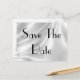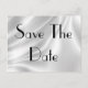 Cartão postal romântico de "Salvar a Data" para convites de ocasiões especiais e eventos. O fundo é de cetim branco elegante. O texto pode ser facilmente alterado e personalizado. Ótimo para casamentos, noivados, aniversários de casamento e festas de aniversário, etc. O verso também pode ser personalizado com mais texto ou apenas excluir o texto de exemplo para escrever à mão posteriormente.