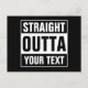 Cartões postais de SAÍDA de HETERO personalizado. Faça suas próprias placas OUTTA de HETERO personalizadas. Design de tipografia engraçado com letras grandes. Adicione sua cidade, paródia ou citação a este gerador de modelo / meme. Um meme de internet branco e preto para homens, mulheres e crianças. Legal exemplos personalizados: Hetero fora da cama. Hetero fora do dinheiro. Hetero de ideias. Hetero fora do café. Hetero fora da prisão. Hetero fora da academia. Nomes das cidades; compton chicago new york LA boston brooklyn. Diversão/novos cartões de endereço para nova casa.